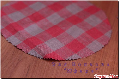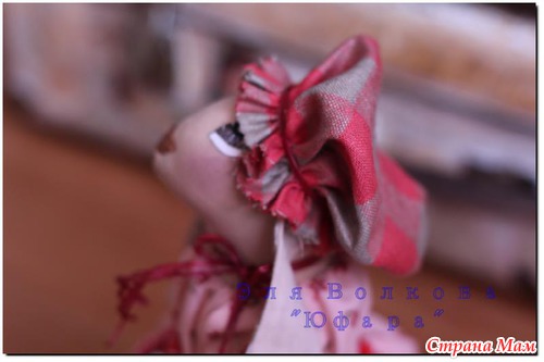 - вырезаем по шаблону круг, который я стягиваю гармошкой отступив от края 10-15мм и стягиваю его непосредственно одев на голову Заюшке. Чепчик - делаю не снимаемым, можно его прям к голове пришить... можно приклеить, как делаю я. Украшаем любой фурнитурой\лентами