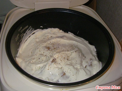вылить сметану, посолить поперчить, обратите внимание-воду и бульон не льём