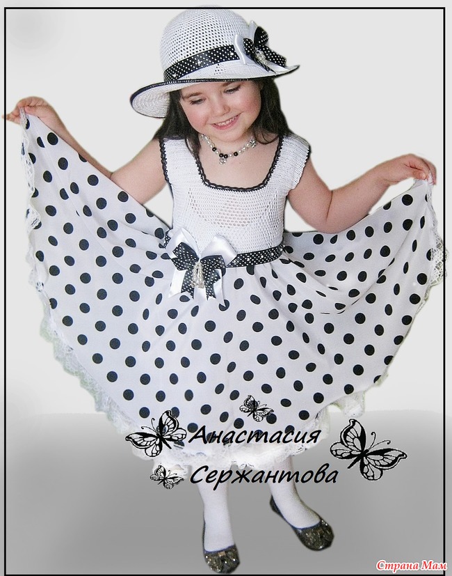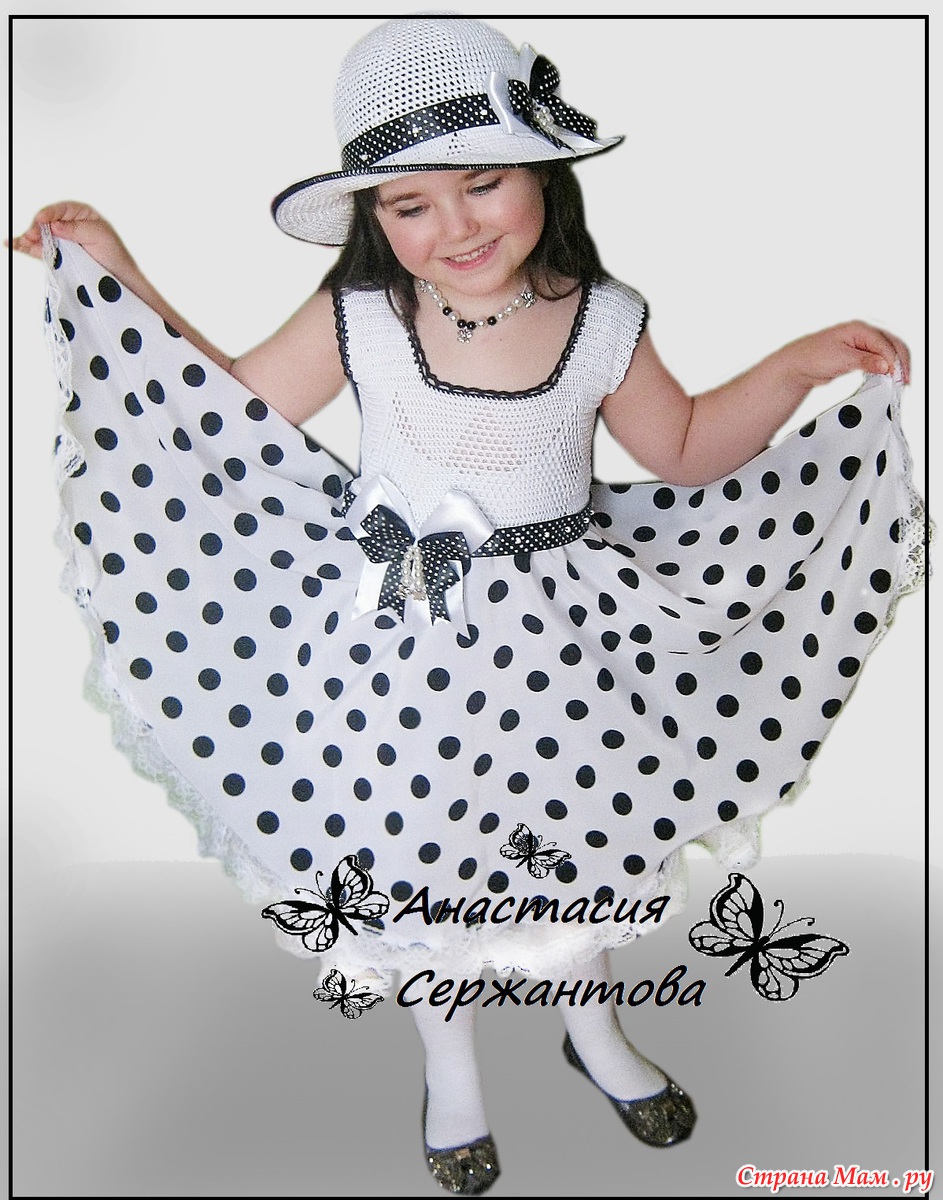 девули, все помнят мою шляпку? как и обещала, связала платье к ней)))точней связала кокетку, а юбку сшила. юбка солнце-без швов. подъюбник из 2х слоев фатина. на каждый слой юбки пришито кружево, всего 15метров ушло. верхняя юбка пришита к кокетке, нижнюю планирую к маечке пришить. описания нет, импровизировала. так что Аленушка на день рожденья наряжена)))вот еще повязочку надо соорудить.