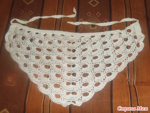 Косыночку для старшей вязала по схеме шали, швейными хлопковыми нитками № 10, крючок №1. Схему брала из интернета, к сожалению ссылка потерялась