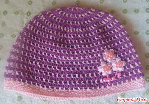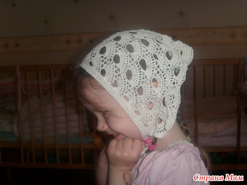 А это шапчушка для младшей, нитки тонкие, какие были дома, крючок № 2. Схему брала вот здесь http://www.korolevstvo-masterov.ru/7-vyazanie/15-mso_kryuchok/651-detej/1193-letnyaya_shapochka_kryuchkom_dlya_devochki/
