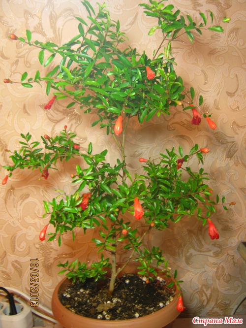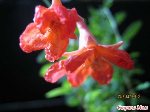 цветочек поближе. впрошлой осенью даже сняли первый "урожай" целых 2 штуки кислючих гранатика, но как интересно наблюдать за их ростом и созреванием