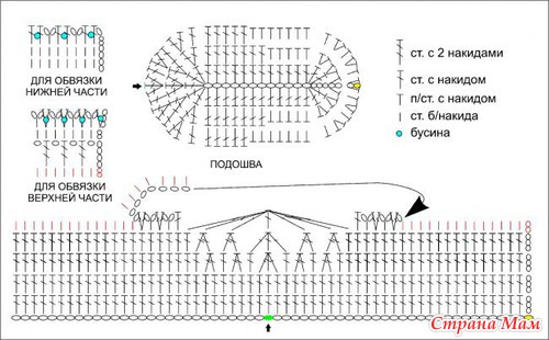 Дальше вязала ориентируясь по этой схемке, но они оказались слишком мелкие и пришлось добавить пару рядочков