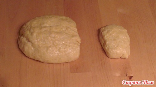 Делим тесто на две части. Маленький кусочек - это где-то 1/4 от всего теста.