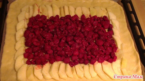 Теперь нужно вспомнить азы геометрии и выложить по периметру теста... рамочку из яблочных тоненьких долек!