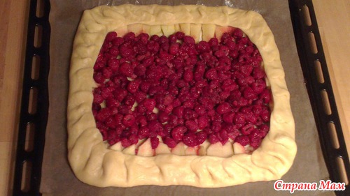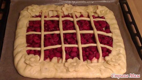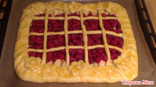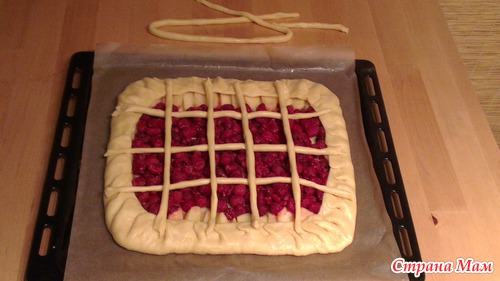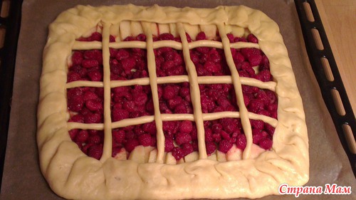 Делаем из жгутиков решёточку на пирог... Я её не переплетаю, думаю малина и так не сбежит...