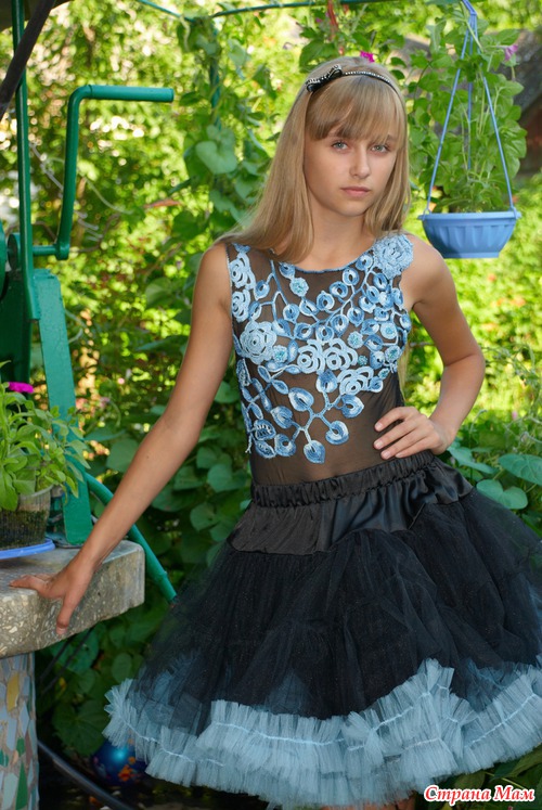 Здравствуйте, девочки! Вот еще одна моя творилка- вечерний наряд для старшенькой. Не весь вязаный, но элементы есть. Можно взять как идею для выпускного бала в сад и начальную школу. Юбка-американка пошита с помощью Осинки, там есть целая тема. Спасибо за внимание. Всем успехов в творчестве!