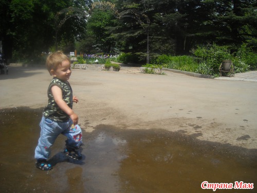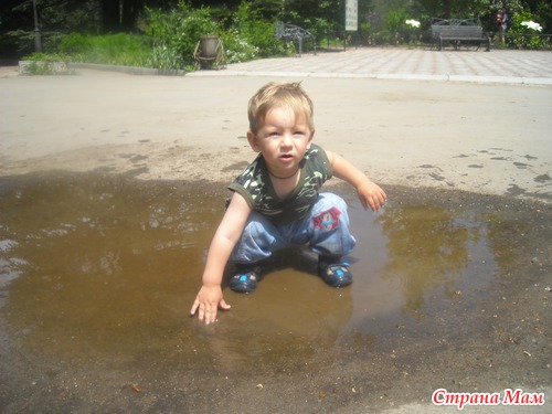 и не просто побегать, а побегать по луже и посидеть в луже! а что, мама разрешила!
