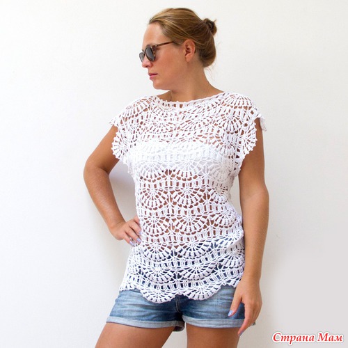 Мне кажется на курорте гулять самое то. Я пробовала связать образец из Yarnart Summer - не понравилось, т.к. вроде бы и нитка в изделии мягкая, а здесь стоит. Кроме того ширина одного раппорта у меня оказалась 12 см. В оригинальной модели вообще 3 раппорта в ширину, т.е. каждый по 15 см. (45 см. спинка). Так и не придумала, что бы сюда подошло. Вообще не очень люблю толстыми нитками вязать, но модель приглянулась своей простотой и очарованием.