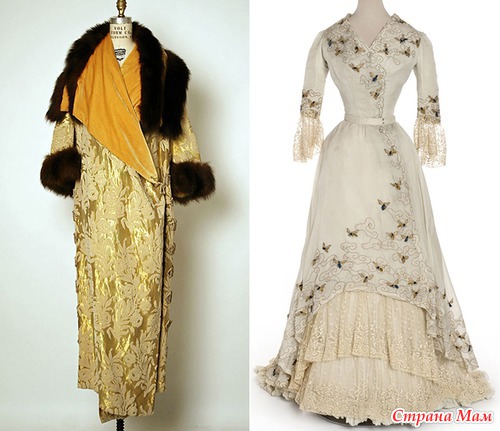 Вечернее пальто Jacques Doucet, бархат, металлическая нить, мех, 1910 г; Платье Jacques Doucet с вышивкой шелком, 1900-1905 гг.