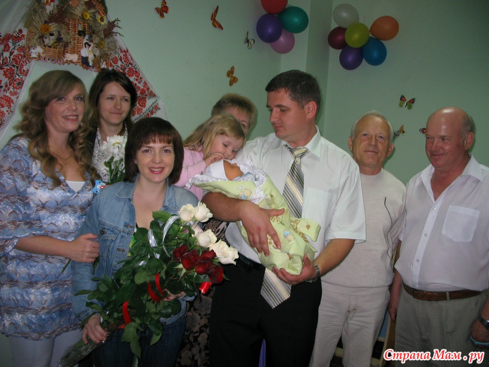 Наконец-то тётя, Людмила Викторовна, сжалилась над нами и отпустила нас домой! Было это 21 июня. Долго же мы просидели с мамой в роддоме!!! Целых 2 недели!!! Нас пришли встречать: папа, тётя Алла, дядя Лёня, дедушка Петя, бабушка Сильва, дедушка Дима, маленькая Олечка, тётя Лена и дядя Руслан. У всех у них были огромные букеты с цветами.