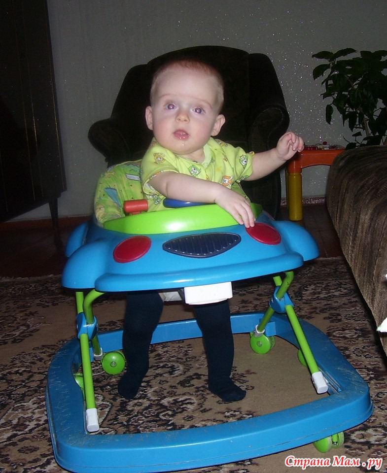 Вроде всего семь месяцев, а такой уже большой! Иногда так взглянет серьезно, что мама с папой задумываются: «А действительно ли их сыну всего 7-мь?!!!» Успехов у нас много... Сидим уже без какой-либо помощи, стоим опираясь за края дивана, немного передвигаемся. Ходим держась за ручки мамы или папы. Хохочем, пищим от радости . Любим играть в ладушки, прятки и танцевать, сидя на маме, бегаем в ходунках . Дедушка Петя подарил нам манеж, но мы там не хотим долго сидеть, выгибаемся, чтоб встать.