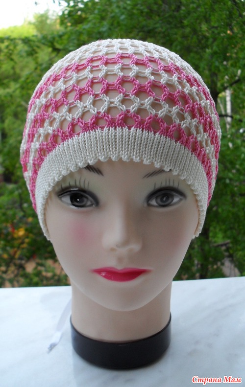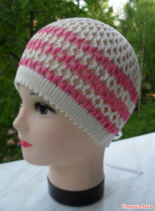 Связала легкую шапочку-хлопок-ажур-крупная сетка, на размер головы 51-53( сзади есть ленточка, чтобы отрегулировать размер). Перепутала с другим заказом, сделала не тот цвет, здесь--слоновая кость+розовый. Продаю за 100р.+50р. пересылка по России заказ. бандеролью.
