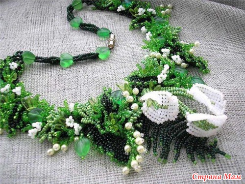 Украшают блузки, края скатертей, салфетки, делают бисерное кружево и платья.