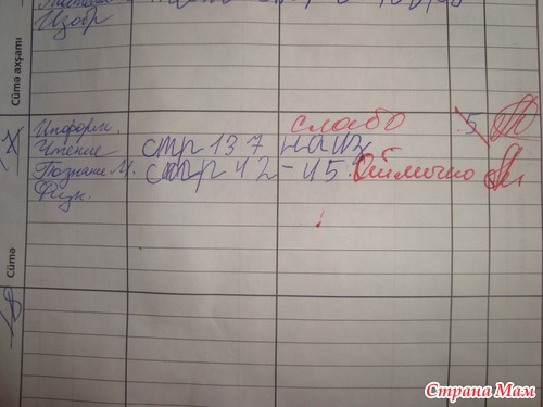 В Пятницу была информатика. После уроков мы узнали что почти все дети получили отметку слабо. По тестам она озвучила их отметки и моя написала себе 5 по тестам. а тут вот она вычекнула на сегодня и так написала. Сама по себе моя бы себе отметку не стала бы писать. Она сказала пишите по тестам что получили.