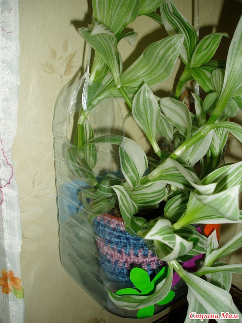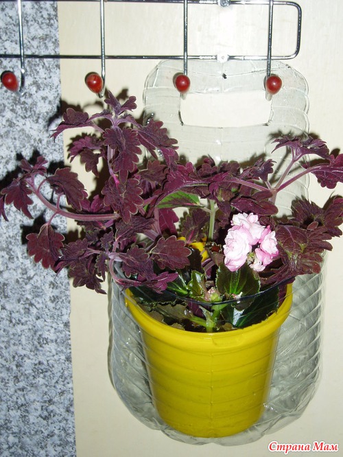 Кашпо из пластиковых бутылок пригодится для садового участка, а также балкона. У нас это поделки для дачи.