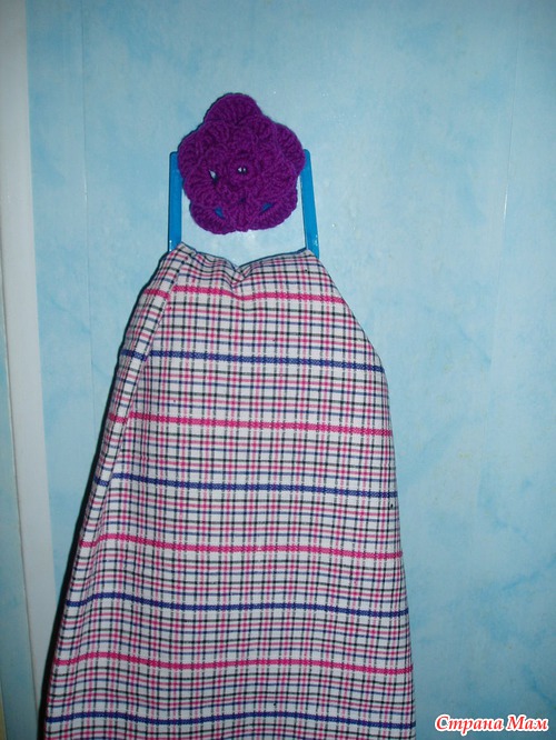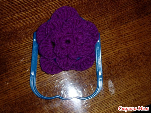 Теперь идея с интерента в моем исполнении. Берем ручку от бутылки, вяжем крючком цветочек, бабочку или что подскажет фантазия и крепим на нашу пластмаску. Дальше используем как держатель для полотенца или других нужносте на даче.