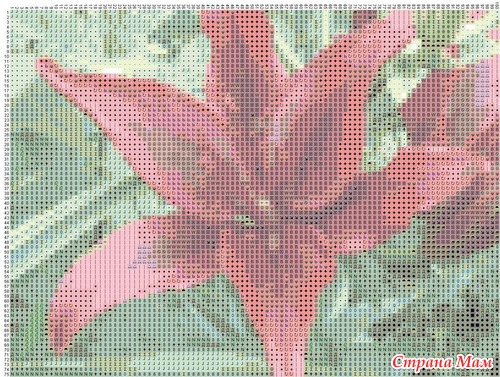 Программка называется Stitch Art Easy. Количество крестиков, размер схемы, количество цветов - вы задаете сами. Даже можно тип символов выбирать. Схему можно сделать цветную, черно-белую (символьную), комбинированную. Есть раскладки по разным ниткам - DMC, Anhor, Гамма и др. Весит программка мало, меньше 2 Мб. Скачайте, попробуйте.