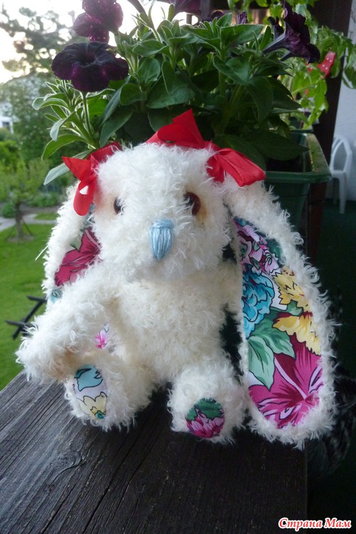 наконец то я ее довязала... в общей сложности управиться с вязанием заиньки можно за день... но мне понадобилось намного больше... уж больно нитки оказались "не видимыми"... и потом долго возилась с платьем... и все равно получилось не совсем так как хотелось... и с мордочкой , вроде пыталась сформировать как надо - но не совсем получилось.. хотя когда смотрю на нее - понимаю что получилась наверно близко к реальным зайцам мордочка... не игрушечная
