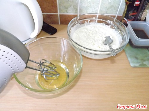 Взбиваем белки в отдельной чистой сухой посуде. Не забудьте добавить щепотку соли, чтоб легче взбивалось.