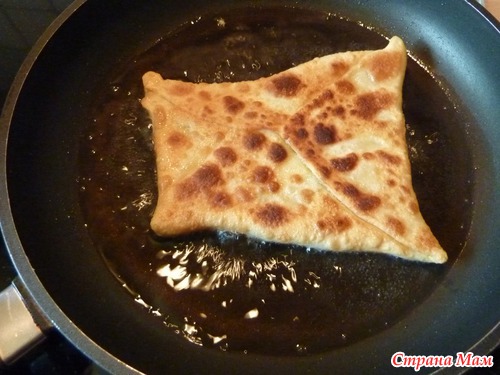 Когда я готовлю манты или пельмени у меня обязательно остается немного теста, я его иногда замораживаю, а иногда готовлю вот такие "чебуреки"