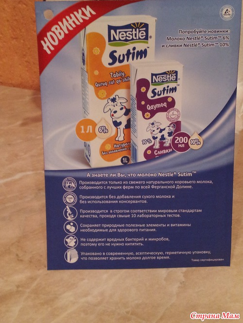 А там проходит акция по новым продуктам NESTLE - молоко 6-процентное и сливки.