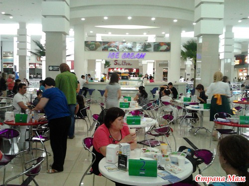 Пришли в супермаркет Megaplanet - там и кофеек попить можно, и ребенка выгулять на игровой площадке. Поднимаемся на последний этаж, там где кафешки.