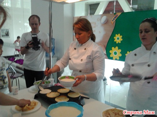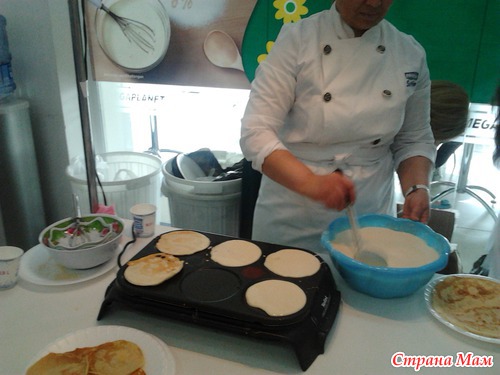 Идея такова - Вы сами делаете тесто, и отдаете его поварам, которые на Ваших глазах жарят блинчики.