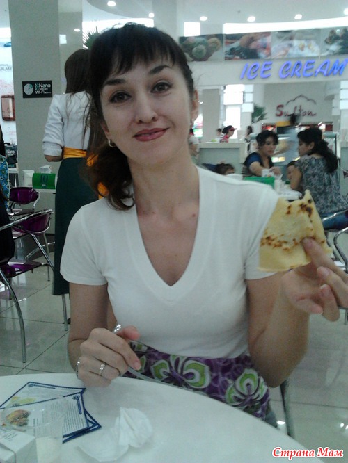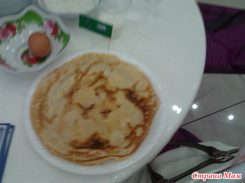 Ну вот блинчики готовы! Нам принесли их на наш стол, перепутать было невозможно, т. к. на чашке с тестом был номер и столы были также пронумерованы. То есть каждый ел свои блинчики.
