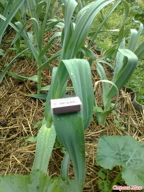 Это чеснок "Рокамболь". Соседка подумала, что это у меня растёт кукуруза.