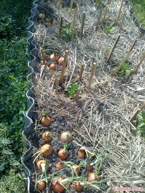 https://www.stranamam.ru/post/5429744/ И вот сейчас снимки нашего огорода сделаны 17 мая. На фотографиях-коллажах показано, что было в апреле, и что стало сейчас. Общий вид огорода. Слева от дорожки "плантация" картошки, справа - чеснок. В чесноке на нижнем фото набиты колья, это для помидор. Помидоры высадила по чесночным грядкам.