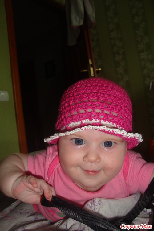 Панамка- за вчера, пинетки- сегодня. Только еще пуговки не купила. Хотела на модельке запечатлить- какое там... Сегодня привезли прыгунки, первый раз показали, так когда примеряла, ну никак поймать в кадр не могла. Только мельком захватила