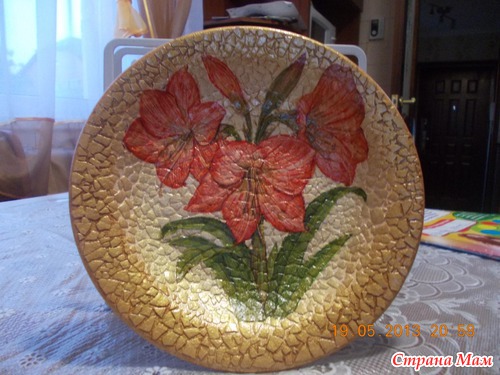 Добрый день, СМ! после ваших комментариев по поводу моей первой работы, я вдохновилась на создание второй работы - тарелки. Использовала яичную скорлупу.