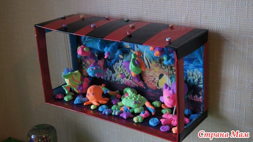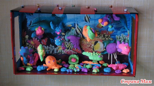 Аквариум. Использовали пластилин, который высыхает и становится легким и твердым.