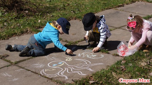 Рисовали на асфальте.
