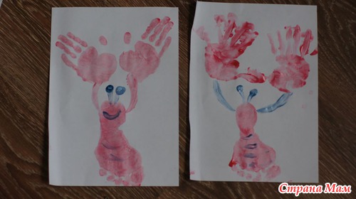 Рисуем рака. Снова пальчиковые краски.