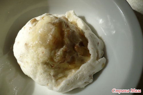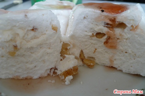7 - остужаем, переворачиваем и поливаем сиропом, лучше кислым а то приторно будет. В разрезе.
