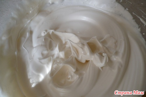 2 - в белки кладем чуть чуть соли и взбиваем до мягких пиков.