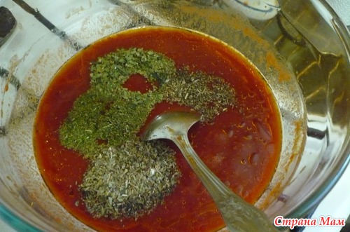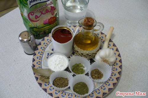 1 - Ингредиенты -Томат. паста ( маленькая банка ) -140 гр., вода 0,5 л., масло раст. -1 ст. л., укроп сушеный - 0,5 ч. л., петрушка сушеная - 0,5 ч. л., базилик сушеный - 1 ч. л., приправа (прованские травы ) - 0,5 ч. л., лавр - 2 шт., чеснок - 4 зуб., сахар - 2,5 ст. л., соль - 1 ст. л., крахмал картоф. - 3 ч. л., перец молот. - по вкусу.