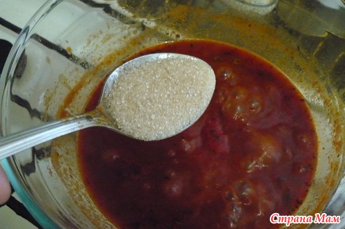 4 -Теперь кладем сахар и соль (ориентируемся на ваш вкус) и варим еще 5 минут.