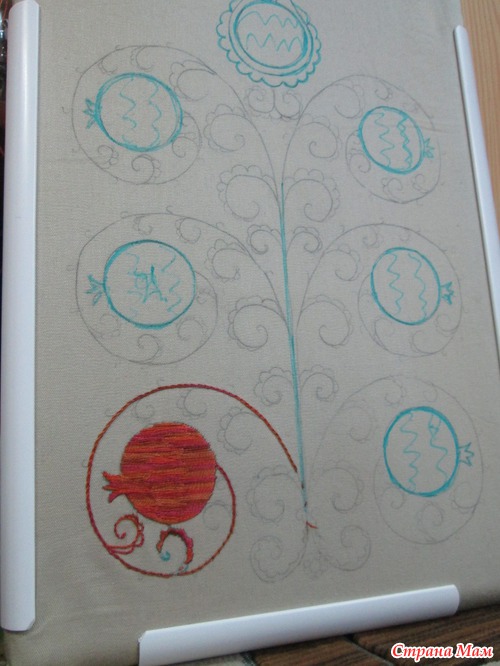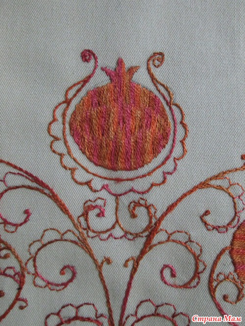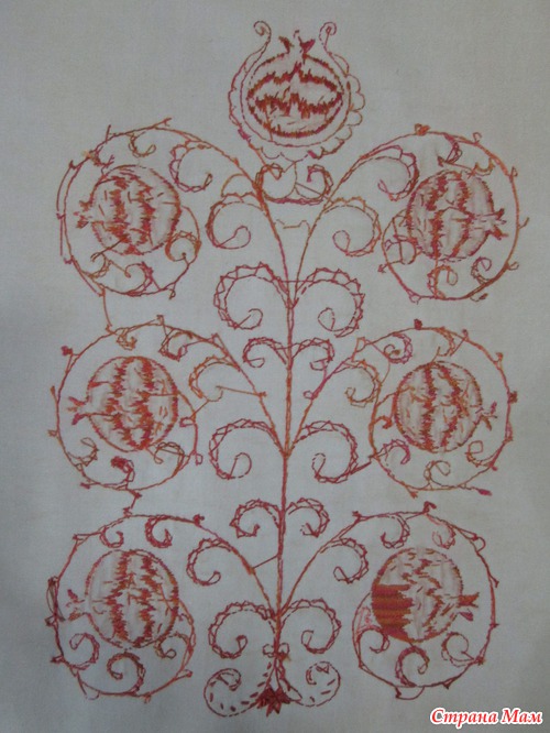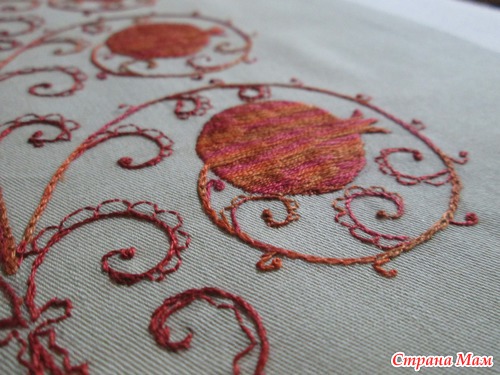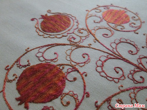 Идея заключалась в вышивке гранатов меланжем. Рисунок нарисован не мной. От меня только идея. Рисунок рисует художник, а цвет, технику выбираю сама. Так вот. Эту картинку видела так. Именно в таких тонах.
