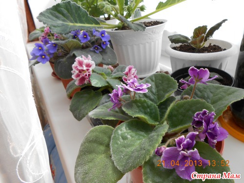 Посадила в прошлом году я несколько листочков фиалки А в этом году уже наслаждаюсь их цветением. Фиалки на фото растут у мамы. Это детки от моих листочков. И немного моих: Читать полностью