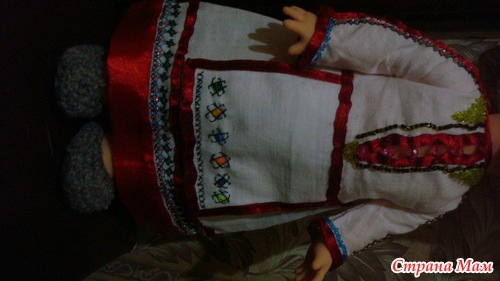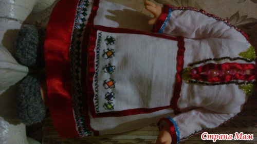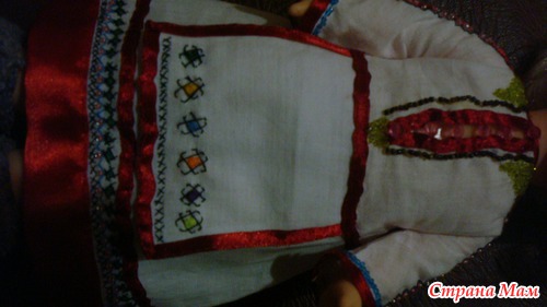 В садике попросили сшить платье национальное в чувашском стиле. Никогда до этого не делала подобное, и честно скажу, очень боялась, что ничего не получится. Трудилась несколько ночей, т. к. днем работала и не было времени. Идею создания взяла отсюда http://olga-igolka.blogspot.ru/2010/12/chuvash-doll.html.