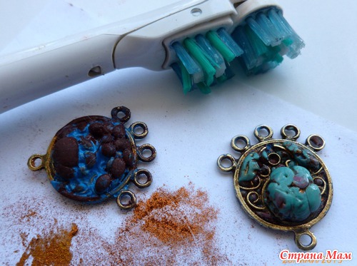Привет, всему творческому народу! Выдалась оказия и прикупила недорогой фурнитуры под бронзу. Ну сделала серьги типа "этно", использовала несколько подвесок, а куча не убывает... Честно скажу сама по себе фурнитура так себе, не шедевр... Но мы же с "дурью", пробку на дороге не пропустим.