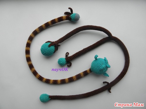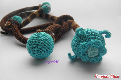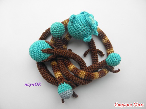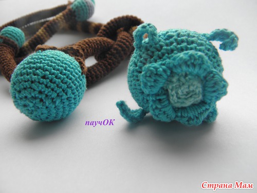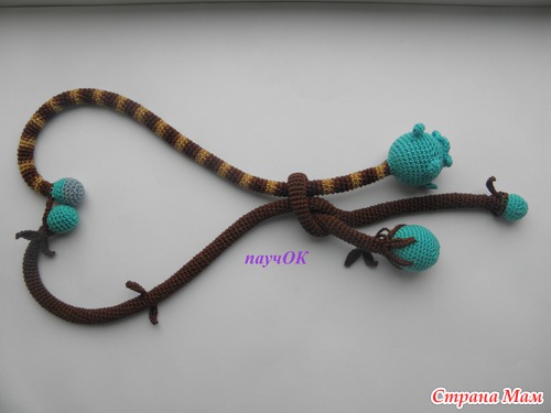6 в месте где образуется новая веточка тоже долго думаа как правильно сделать. довязала до развилки, провязала половину петель, а оставшиеся количество петель набрала цепочку и дальше по кругу - получилась сбоку дырочка.