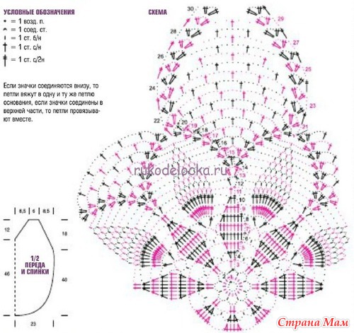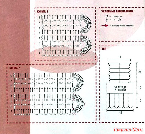 Схема вязания узором топа и выкройка: