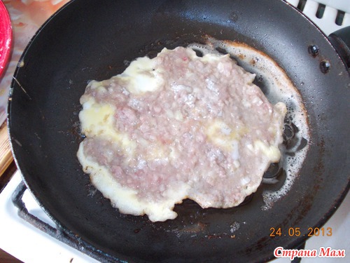 делаем из фарша колобочки, размером как яйцо примерно, можно побольше, и катаем из него блин