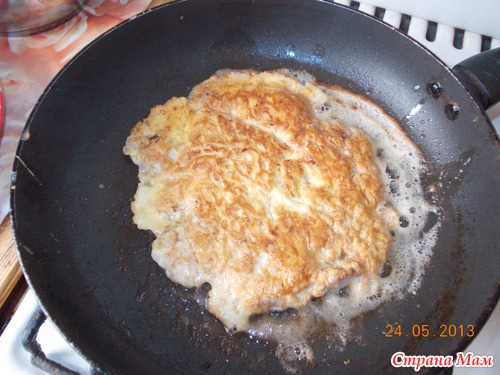 Я обычно делаю в виде лепешечки, иногда добавляю лук, а потом сверху покрываю жаренным яйцом, жарю по одному с глазком.