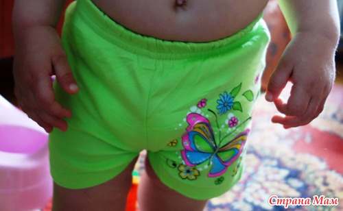 3. Шортики зеленые, размер 104, нам как раз впору. На фотке на памперс надеты.