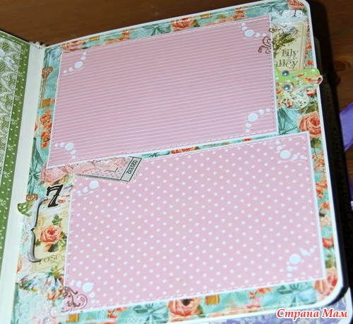 Альбом 21-26 см, переплет Виноградовой, 7 листов, 16 страниц, Первый год жизни. Есть 11 страничек по месяцам, беременность, выписка, 1 нг и 1 др, карман с карточками. В альбоме много кружева, цветов, я старила края и тонировала акрилом.